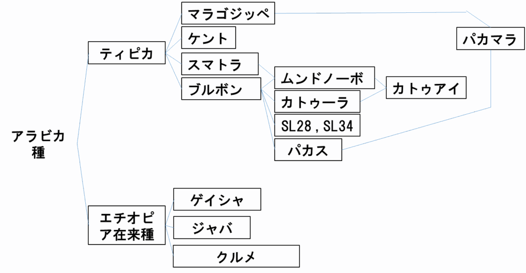アラビカ種の中にも、遺伝的な違いによってさまざまな系統や品種が存在します。